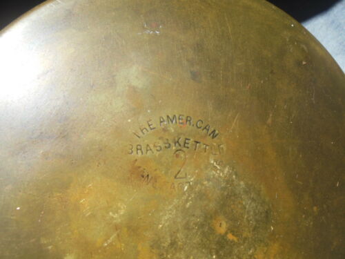 ANTIQUE AMERICAN BRASS KETTLE CO. SIGNED BUCKET EARLY RAT TAIL FORGED HANDLE