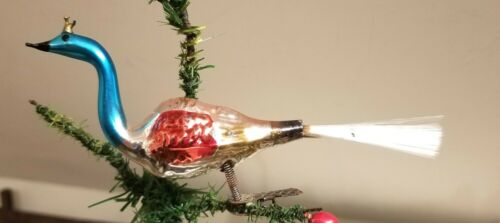 Title (ebay affiliate link): First Bright, colorful Peacock on Clip, White Spun Glass Tail. 1930s German Orn