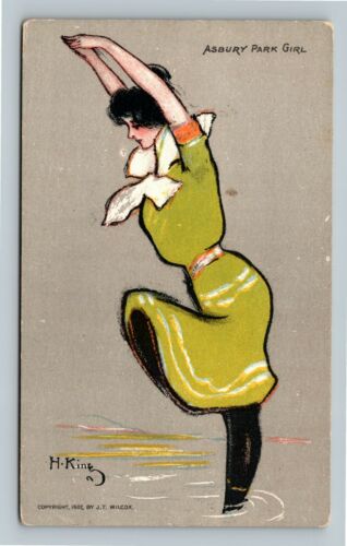Asbury Park Girl, H. King Original Signed Postcard 1907-1915 Bathing Beauty