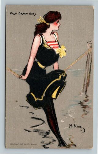 Palm Beach Girl, H. King Original Signed Postcard 1907-1915 Bathing Beauty