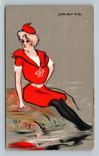 Cape May Girl, H. King Original Signed Postcard 1907-1915 Bathing Beauty