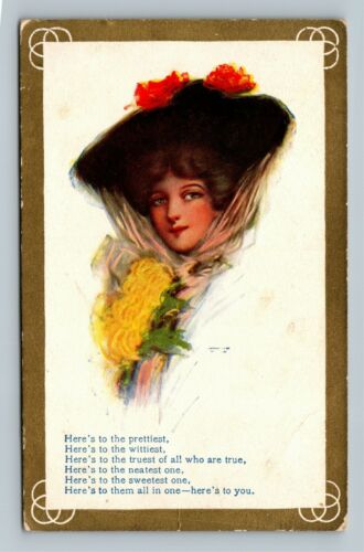 Title (ebay affiliate link): Victorian Woman Hat with Red Bow H. King Original Signed Vintage c1909 Postcard
