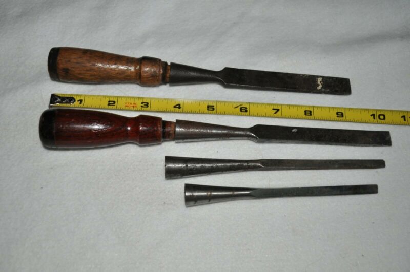 Title (ebay affiliate link): Vintage Lot of Four Wood Chisels and Two Wooden Handles