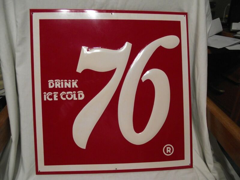 Title (ebay affiliate link): VINTAGE DRINK ICE COLD 76 EMBOSSED ADVERTISING SIGN