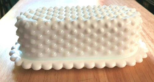 Fenton Milk Glass Hob Nail Covered Butter Dish