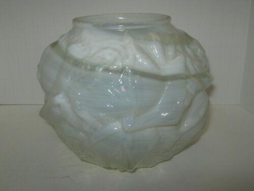 VINTAGE EARLY GOOFUS VASE #2 MILK GLASS OPALLESCENT GROUND LIP GREAT FIRE 1 of 2