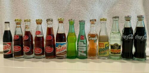 Title (ebay affiliate link): 13 Vintage Miniature Soda Pop Bottles with Caps + Empty Dr Pepper & Coca-Cola