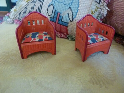 Antique 1920''s dollhouse Korbi Wicker chairs, Gottschalk Germany furniture