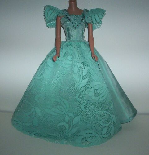 Title (ebay affiliate link): Barbie Vintage Style Homemade Turquoise Dress Gown with Lace & Beads