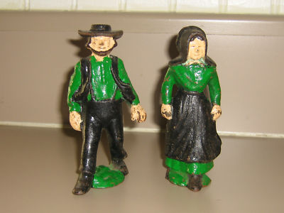 Vintage Cast Iron Amish Man and Lady Couple Green Black