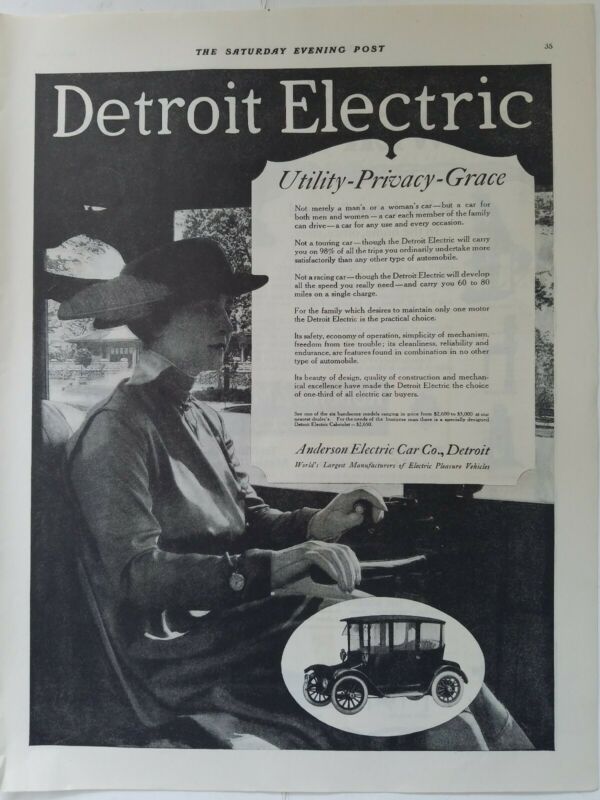 Title (ebay affiliate link): 1915 Anderson Detroit Electric car woman drives utility privacy grace vintage ad