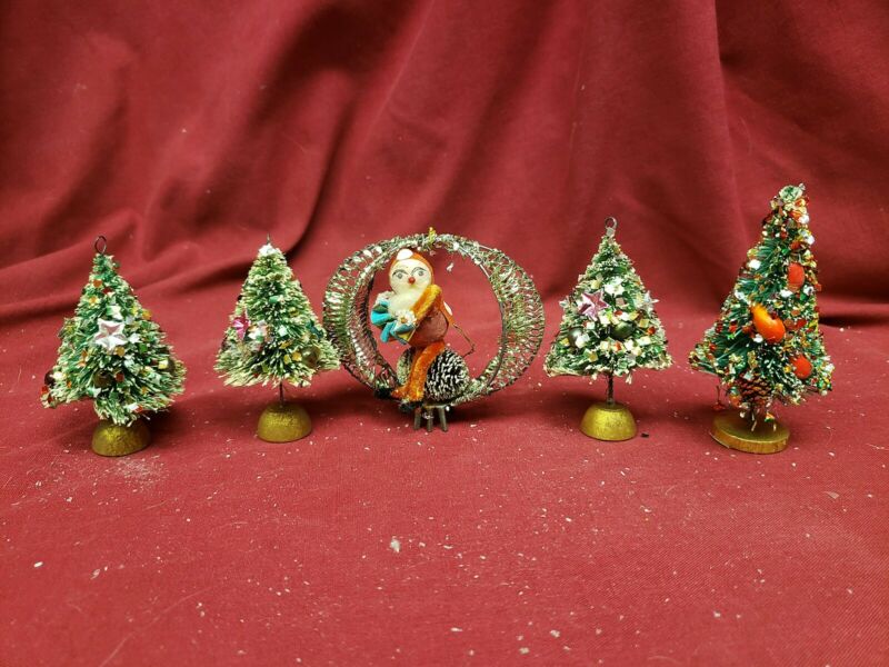 Title (ebay affiliate link): Christmas in July!! Vintage Glitter Mini Christmas Trees & Santa Ornament 1950''s