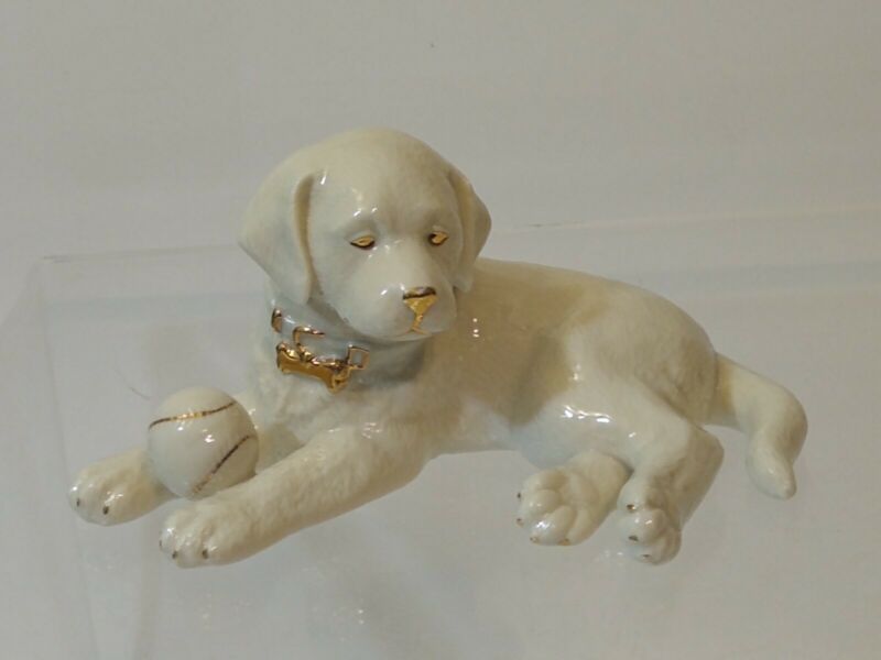 LEXOX Puppy Dog w/ Baseball Porcelain Figurine