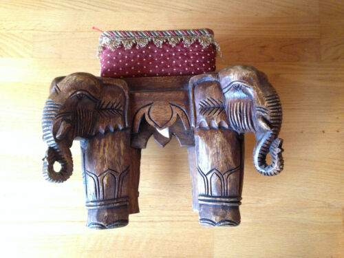 Vintage Carved Wooden Elephant Stool with Cushion - FREE SHIPPING!