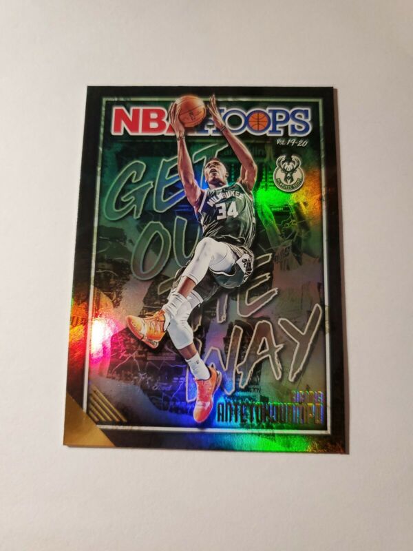 Title (ebay affiliate link): 2019-20 NBA HOOPS GET OUT THE WAY INSERTS GIANNIS ANTETOKOUNMPO BUCKS FOIL