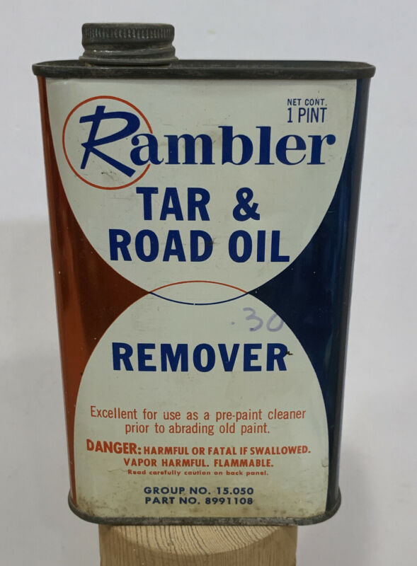 Title (ebay affiliate link): VINTAGE AMC RAMBLER GENUINE TAR AND ROAD OIL REMOVER. AMERICAN MOTORS CORP. USA!