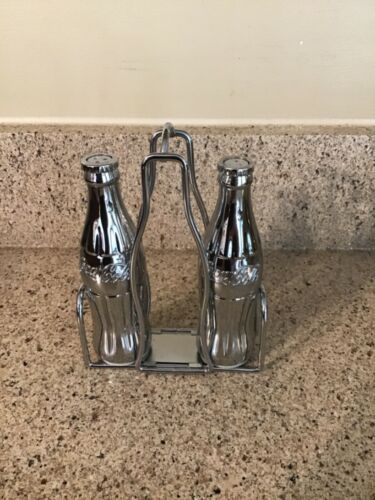 Title (ebay affiliate link): 1998 Chrome Coca-Cola Coke Bottle Salt and Pepper Shakers w/Rack Holder Vintage