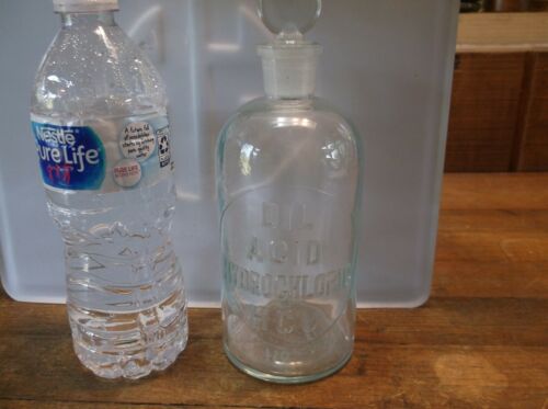 Title (ebay affiliate link): VINTAGE HYDROCHLORIC ACID CLEAR GLASS BOTTLE WITH GLASS STOPPER