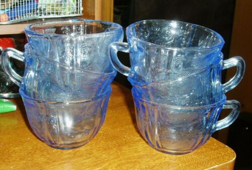 Title (ebay affiliate link): VTG. LIGHT BLUE DEPRESSION GLASS CUPS MADRID (REPRODUCTION?) SET OF 6