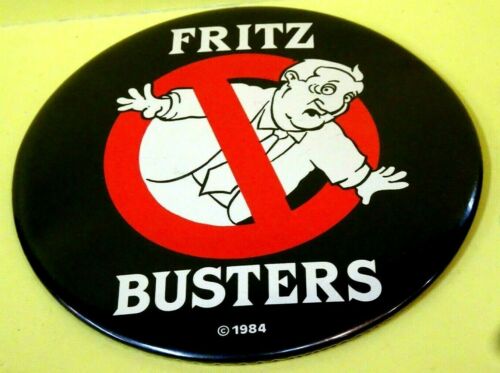 1984 HUGE 6" Metal Anti Mondale Political Pin w/Easel on back Fritz Busters*