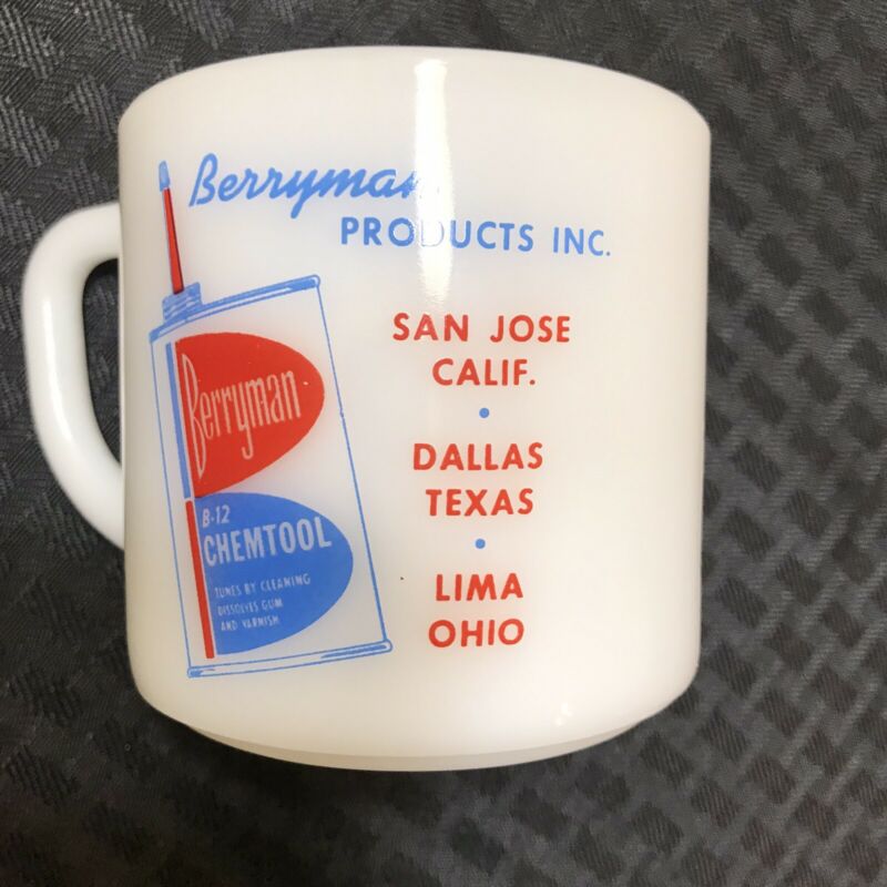 Title (ebay affiliate link): Berrymore Products Chemtool Federal Milk Glass Advertising Coffee Mug vintage