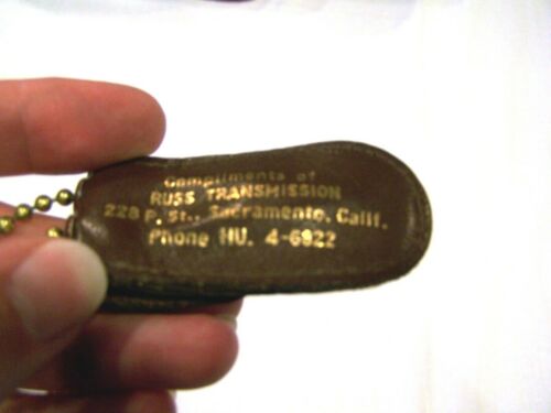 Title (ebay affiliate link): Vintage automobile Russ Transmission Sacramento leather key chain