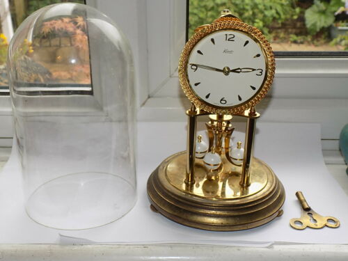 VINTAGE KUNDO 400 DAY MECHANICAL WIND ANNIVERSARY GLASS DOME CLOCK