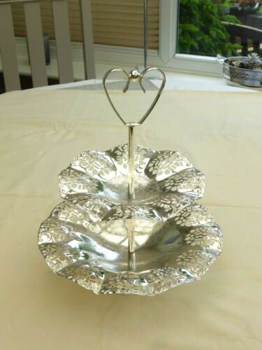 Title (ebay affiliate link): VINTAGE SILVER PLATED 2 TIER CHASED & PIERCED CAKE/PASTRY STAND 1570120/124