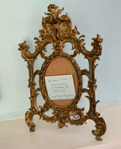 Title (ebay affiliate link): Antique Victorian Brass Standing Easel Table Dresser Bookshelf Picture Frame