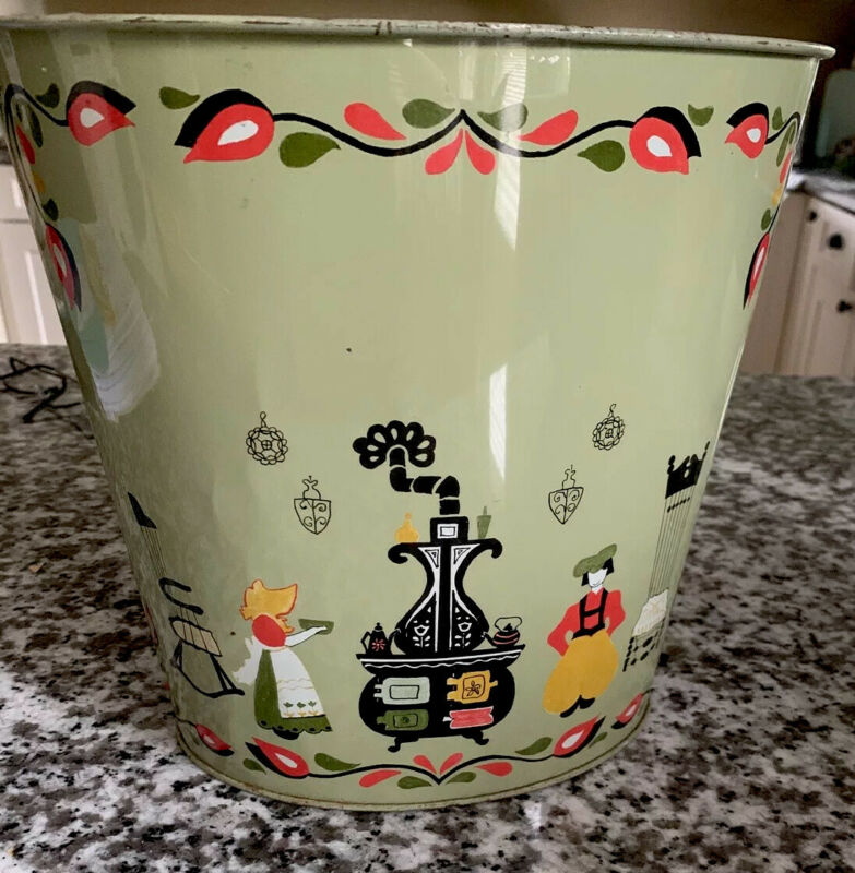 Title (ebay affiliate link): Vintage Retro J.V Reed & Co Green Hand Painted Kitchen Metal Garbage Can Tin