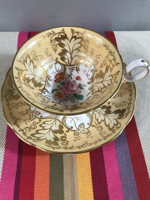 Vntg Grosvenor Yellow & Gold Jackson & Gosling Rose Bone China Teacup & Saucer