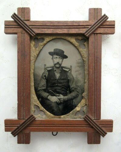 Title (ebay affiliate link): Awesome Antique Framed Man In Hat w PIPE Tintype MINIATURE TRAMP ART FRAME