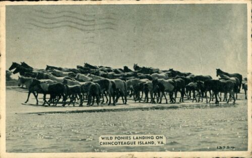 Title (ebay affiliate link): Postcard: Wild Ponies Landing on Chincoteague Island, Virginia.