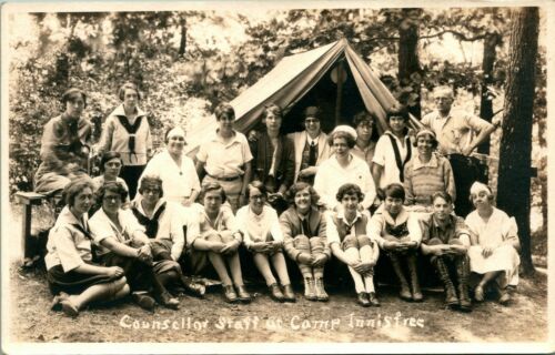 Title (ebay affiliate link): RPPC ~ COUNSELOR STAFF ~ CAMP INNISFREE ~ GIRL SCOUTS ~ HOWELL MICHIGAN D51