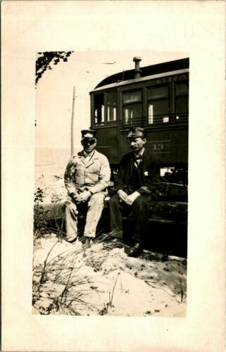 Title (ebay affiliate link): RPPC ~ 1918 TRAIN ENGINEERS IN UNIFORM ~ RAILROAD CONDUCTORS ~ STREET CAR 75D