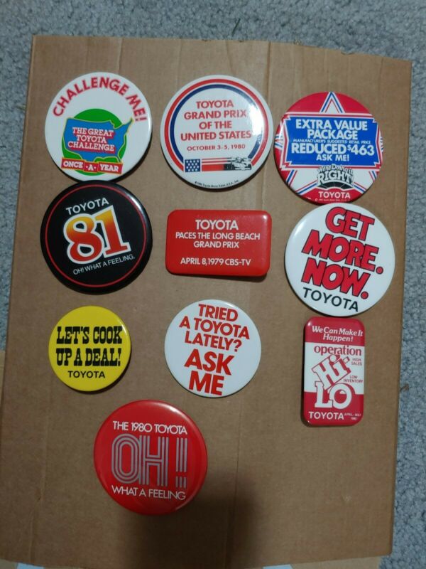 Title (ebay affiliate link): VINTAGE TOYOTA PIN BACK BUTTON Advertisment Lot of 10