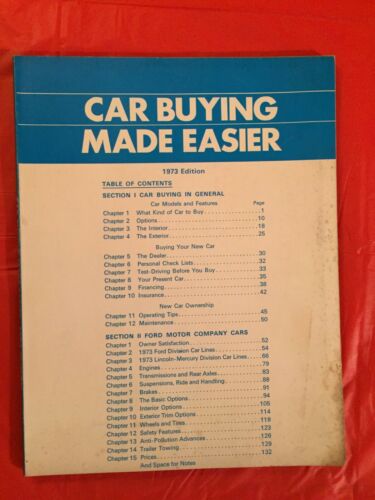 Title (ebay affiliate link): 1973 Ford "CAR BUYING MADE EASIER--Mustang Cougar Torino +" Dealer Sales Book