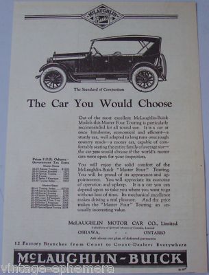 Title (ebay affiliate link): 1923 CANADIAN MCLAUGHLIN BUICK AD MASTER FOUR TOURING