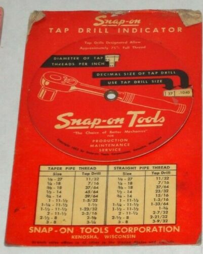 Title (ebay affiliate link): Vintage 1952 Snap-On Tools Tap Drill Size Indicator Circular Slide Rule Chart