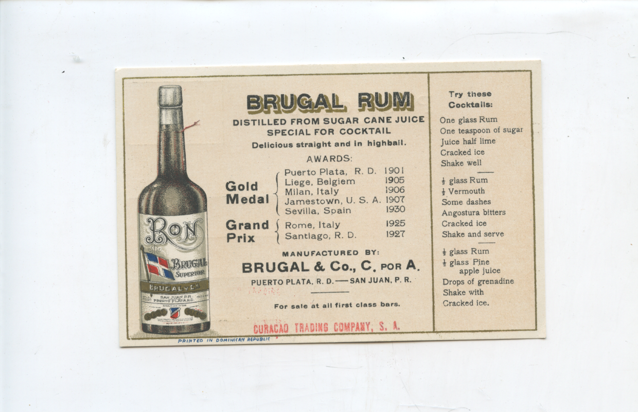 ca 1920''-30''s Brugal Rum advertising Puerto Rico postcard, Ron, alcohol. ad