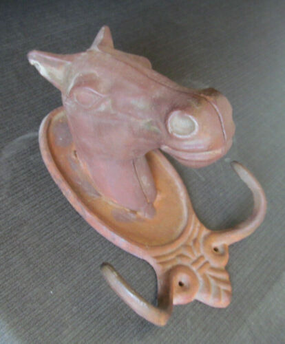 Title (ebay affiliate link): ANTIQUE 3D CAST IRON PRIMITIVE TACK COAT HAT HOOK HORSE STALLION BRONCO HEAD