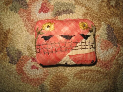 Primitive tiny Sampler Pillow~3 Crows on a Fence~Early Quilt~ Simple Folk Art