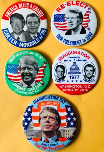 Title (ebay affiliate link): Four 3 1/2" and 4" Jimmy Carter Political Pinback Buttons for Charity