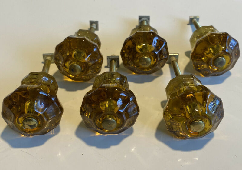 6 Vintage Antique Style Depression Glass Cabinet Knobs Amber Victorian