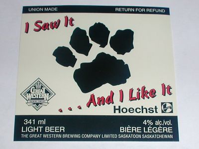 RARE CANADA BEER LABEL HOECHST GREAT WESTERN SK