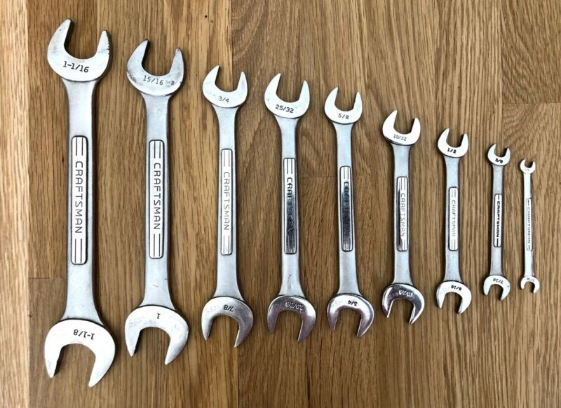 Title (ebay affiliate link): Vintage Lot of 9 CRAFTSMAN Open End Wrench Set - USA Made - 1/4" to 1-1/8" NR