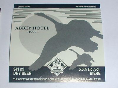RARE CANADA BEER LABEL ABBEY HOTEL GREAT WESTERN SK