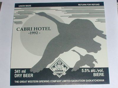 RARE CANADA BEER LABEL CABRI HOTEL GREAT WESTERN SK