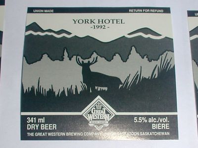 RARE CANADA BEER LABEL YORK HOTEL GREAT WESTERN SK