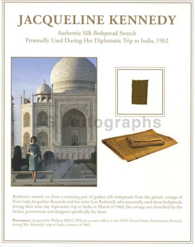 Title (ebay affiliate link): Jacqueline Kennedy Display w/ Silk Swatch From Diplomatic Trip to India, 1962